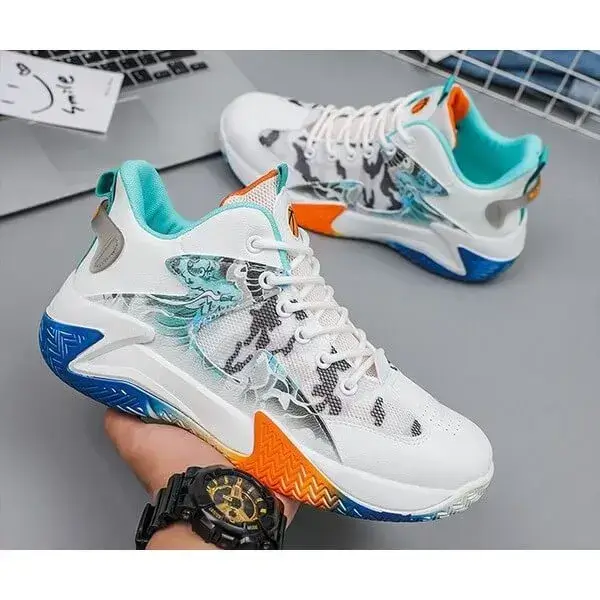 Make a statement with our Mens Colorblock Mesh Sneakers. These hand-painted, breathable low-top shoes in White Red and White Orange feature glow-in-the-dark accents, blending artistic flair with practical visibility. Perfect for active men, they offer lightweight comfort and durability for day or night wear.